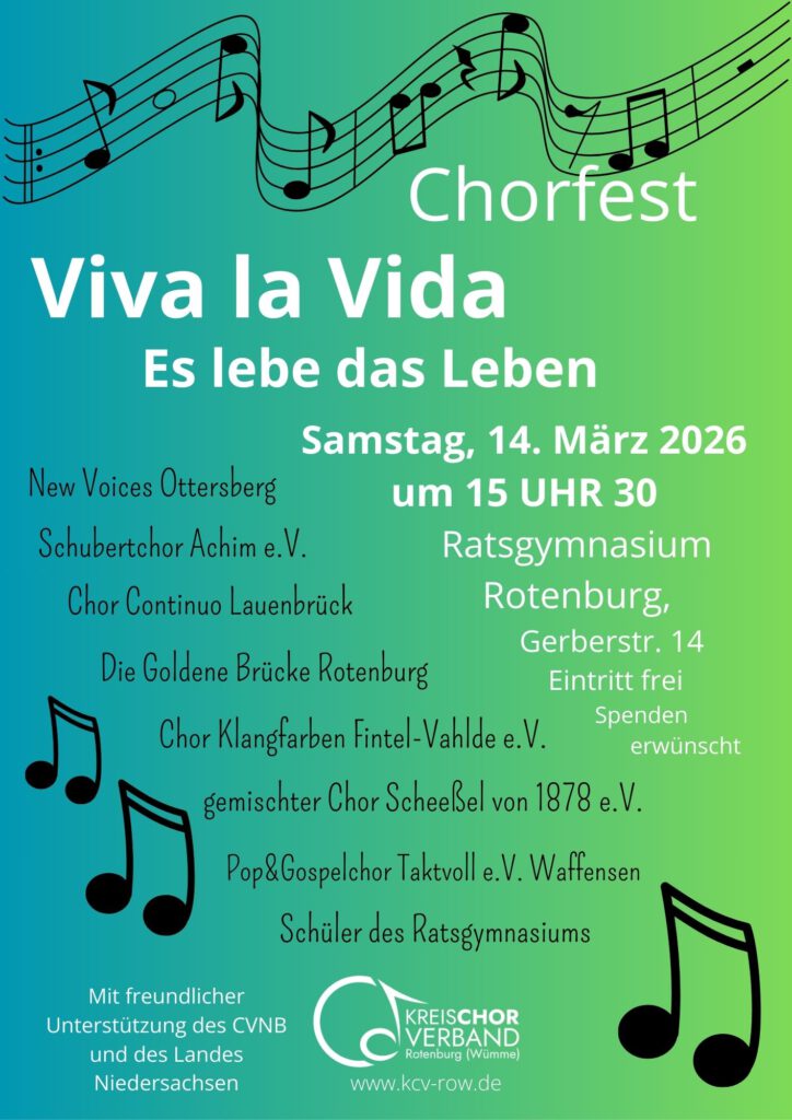 Der Kreischorverband und die Mitgliedschöre veröffentlichen hier ihre Auftritte. Bei Fragen zu einzelnen Veranstaltungen wenden Sie sich bitte direkt an uns oder an die Chöre. Kontaktdaten finden Sie in den Rubriken „Vorstand“ und „Mitgliedschöre“.